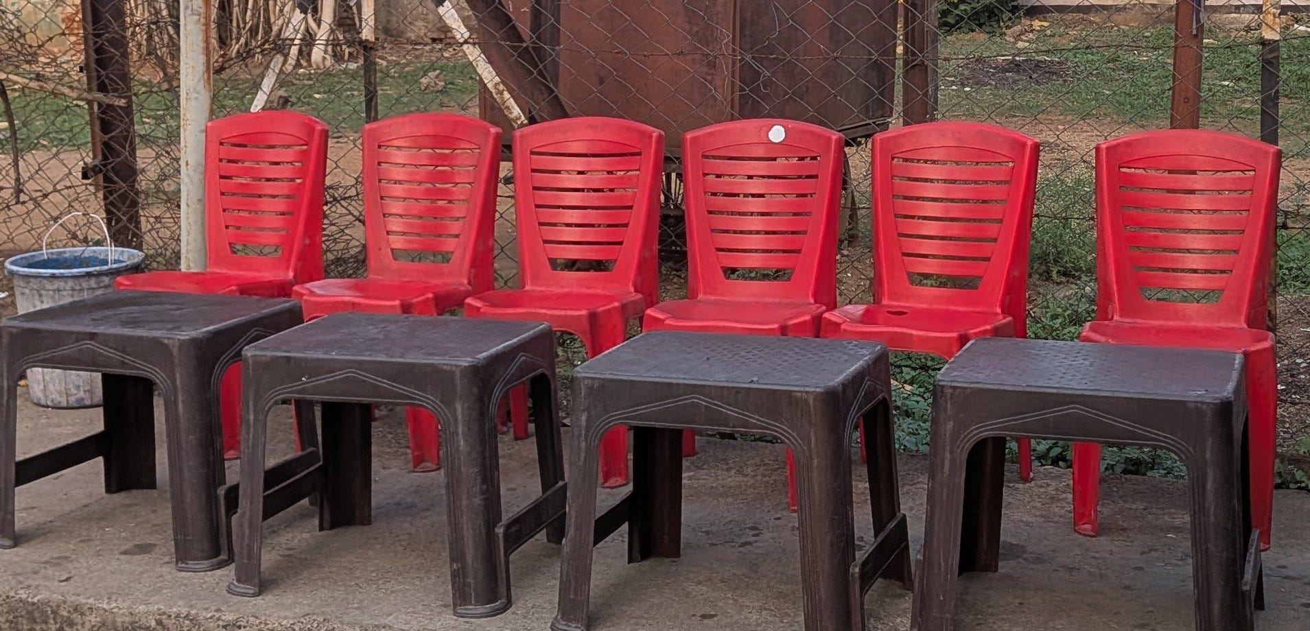He’s just thrown some red plastic chairs for the customers to sit and eat.