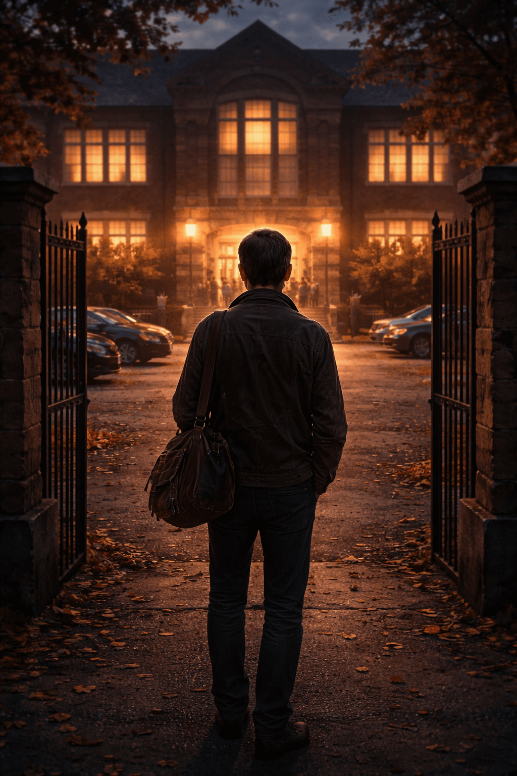 The school courtyard buzzed with noise—laughter bouncing off old walls, voices layered over each other, stories competing for attention. People stood in clusters, some hugging warmly, others measuring each other with polite smiles.
